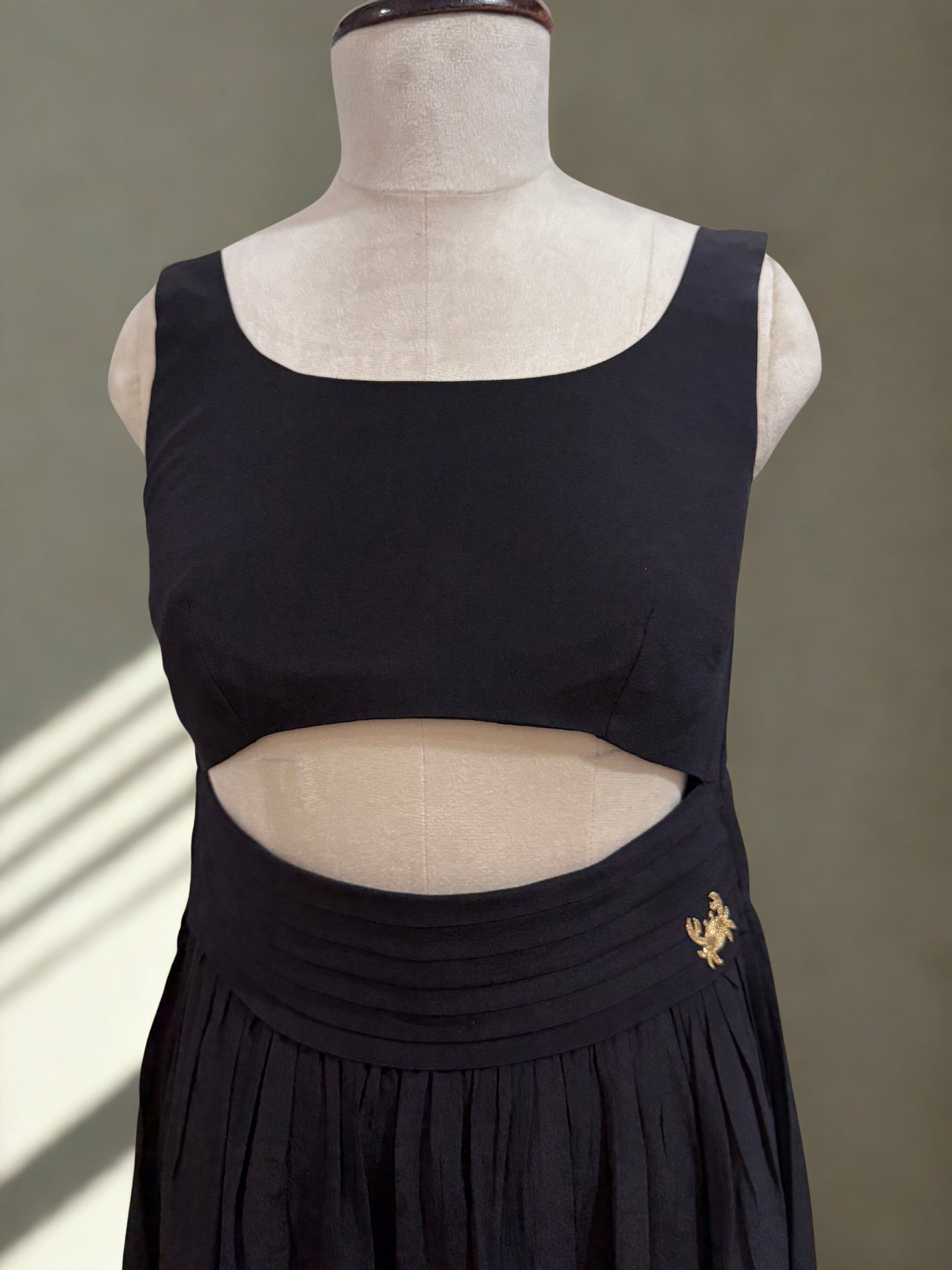 Black Silk Crepe Sculpted Dress